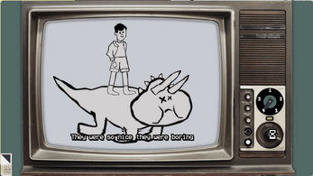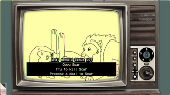 A "graphic adventure" game where, in search for inspiration, you do channel surfing and imagine how movies could unfold if characters take different decisions or the plot of the movie itself takes an unexpected twist.